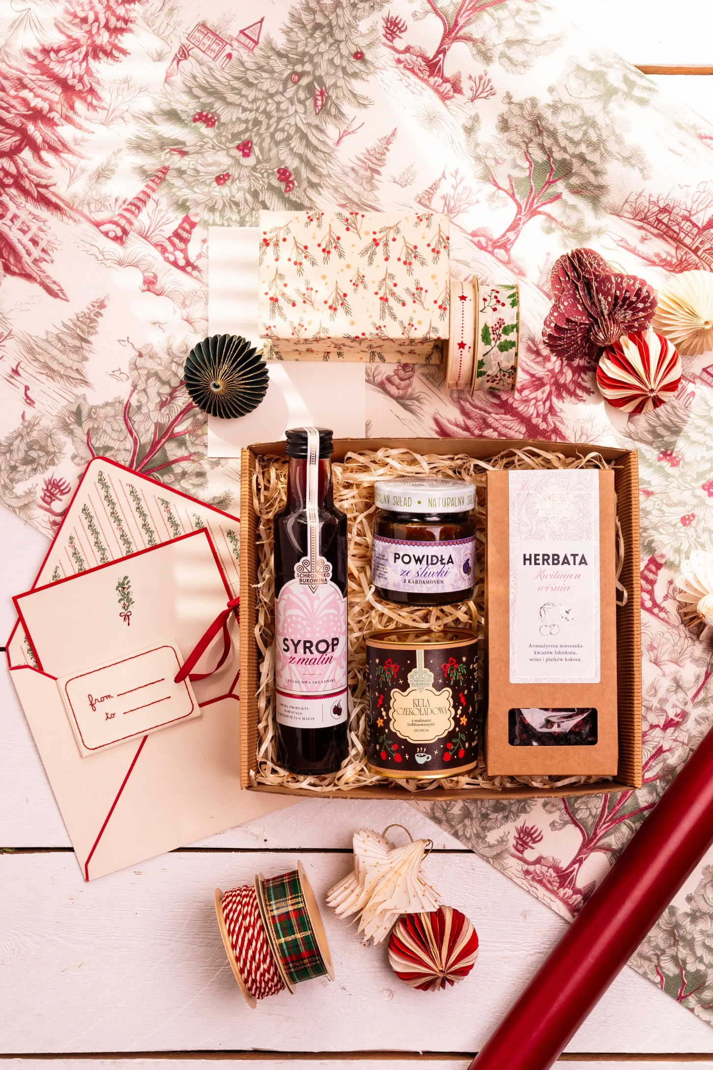 Po dodaniu zestawu prezentowego do koszyka pojawi się możliwość personalizacji oraz wyboru obwoluty, bilecika lub kartki.