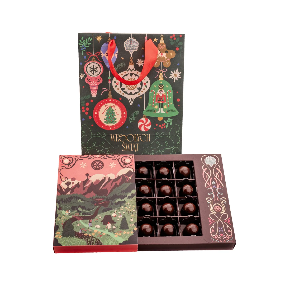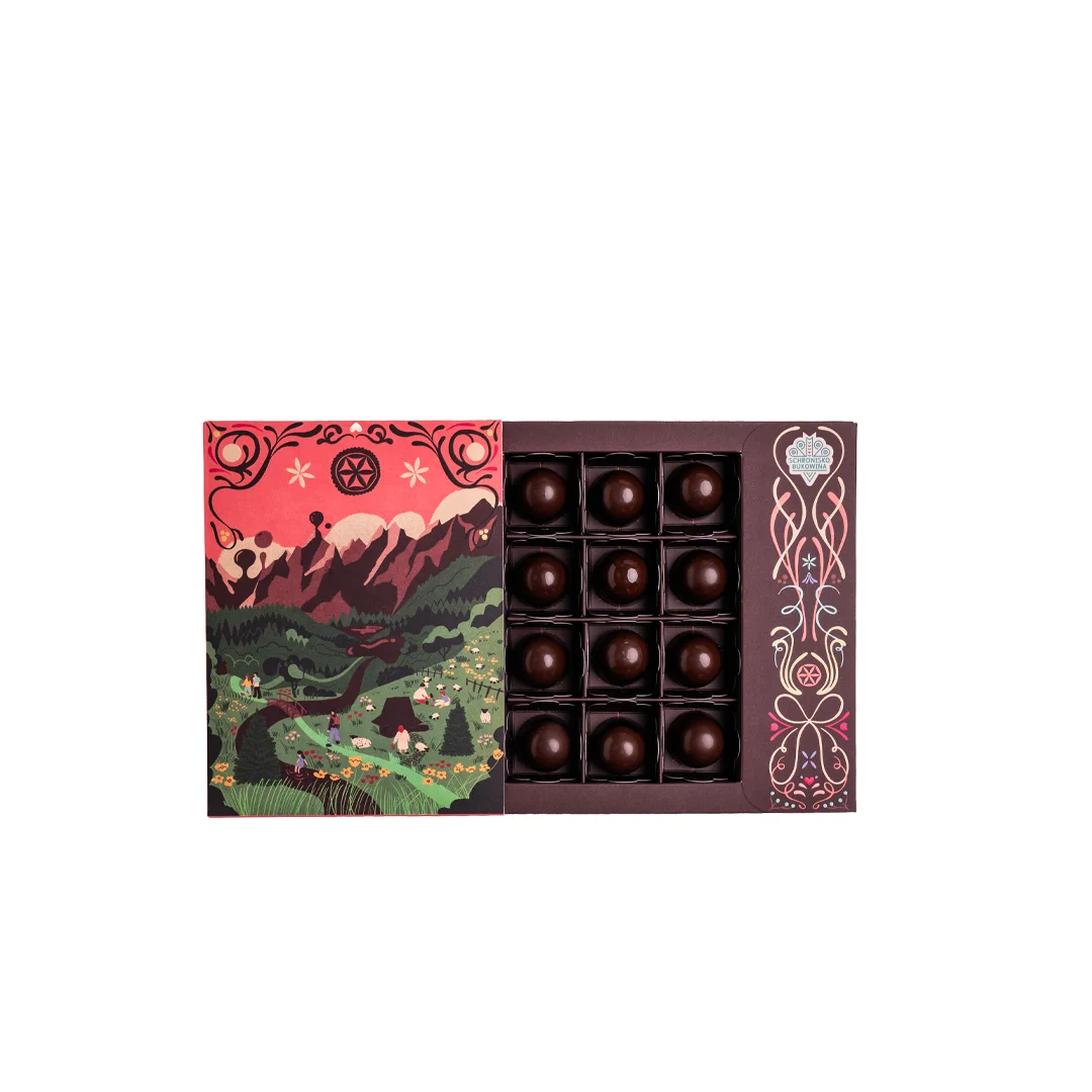Poczuj magię świątecznego smaku w najbardziej eleganckiej formie. Nasze ręcznie robione praliny piernikowe to wyjątkowe połączenie aksamitnej belgijskiej czekolady deserowej z aromatycznym nadzieniem o nutach korzennych, cynamonu i miodu. Każda pralina tworzona jest z pasją w manufakturze czekolady Schroniska Bukowina, w małych partiach, przez mistrzów rzemiosła cukierniczego - dzięki czemu każda sztuka jest małym dziełem sztuki.